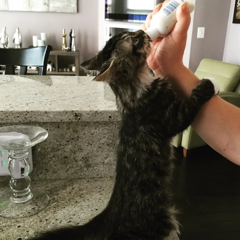 They discovered that the tiny kitten was born without elbow joints. Marnie, who is specialized in caring for special needs, neonates and critical care kittens, took the miniature kitten home to foster, but as soon as they met, she fell in love.