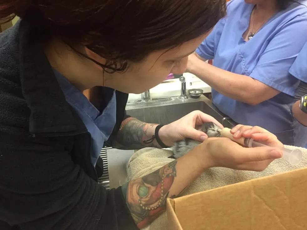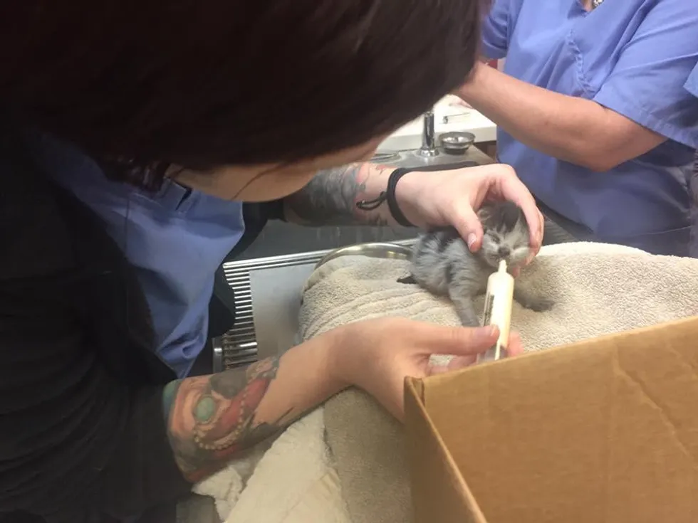 The two boys and one girl were just a couple of days old and needed immediate care, so they took them to a local vet, Veterinary Specialty & Emergency Care, where they were fed, cleaned and evaluated.