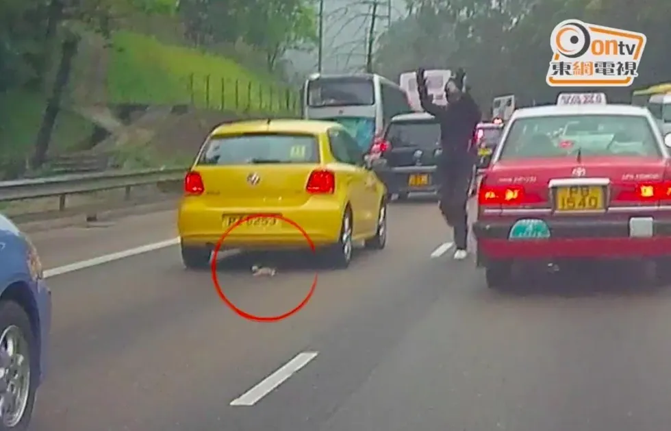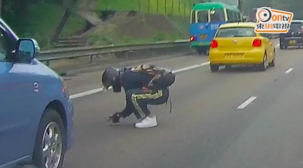 The kitten froze in fear in the middle of the road, and many drivers just drove around him until a kind-hearted man named Kevin (Kwok Kin Wai) sprang to help.