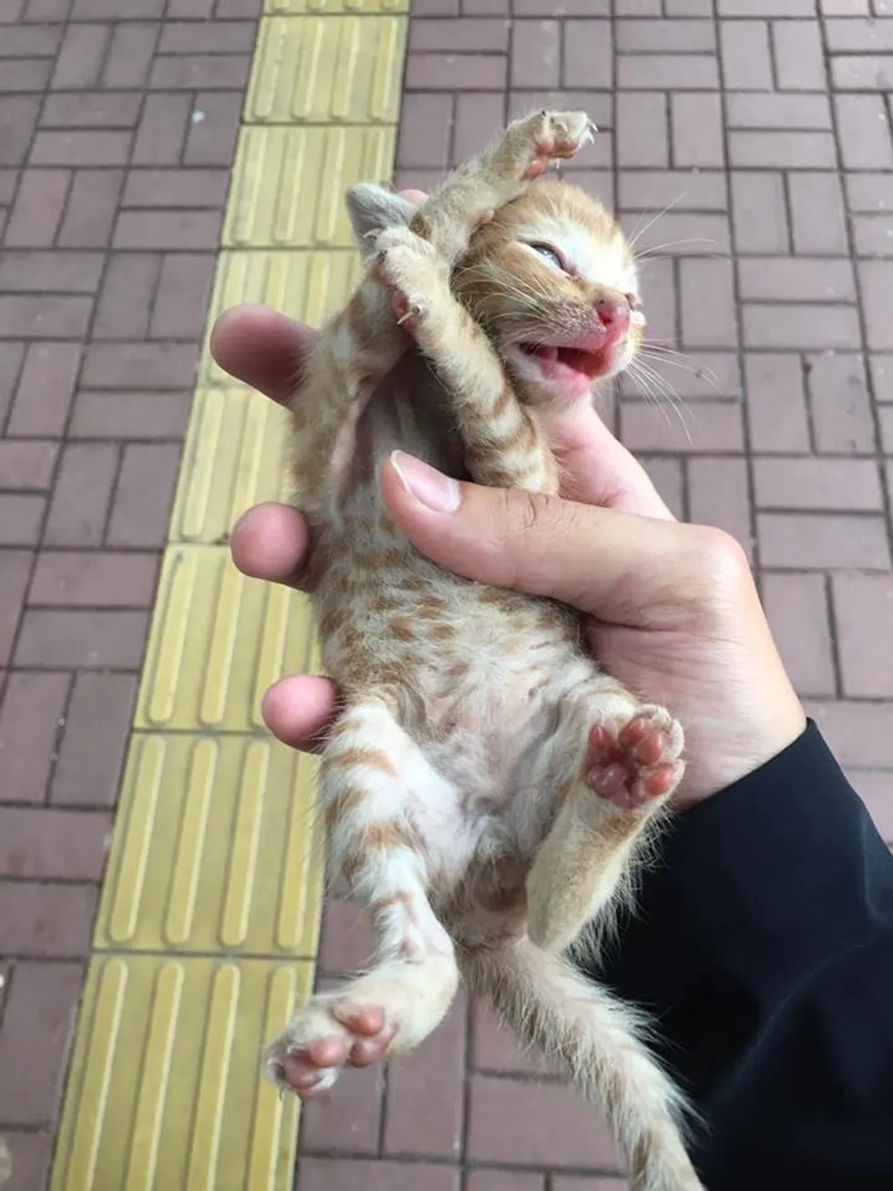 On April 27, a tiny ginger kitten was spotted by Lion Rock Tunnel in Hong Kong. Due to rush hour, there was a lot of traffic on the road, and the kitten nearly got run over.