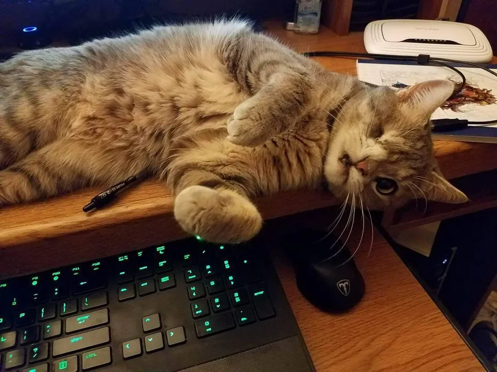“He spends a lot of time in his cat tree. He also likes fighting with his ‘sister’, and they take turns being the aggressor.”
