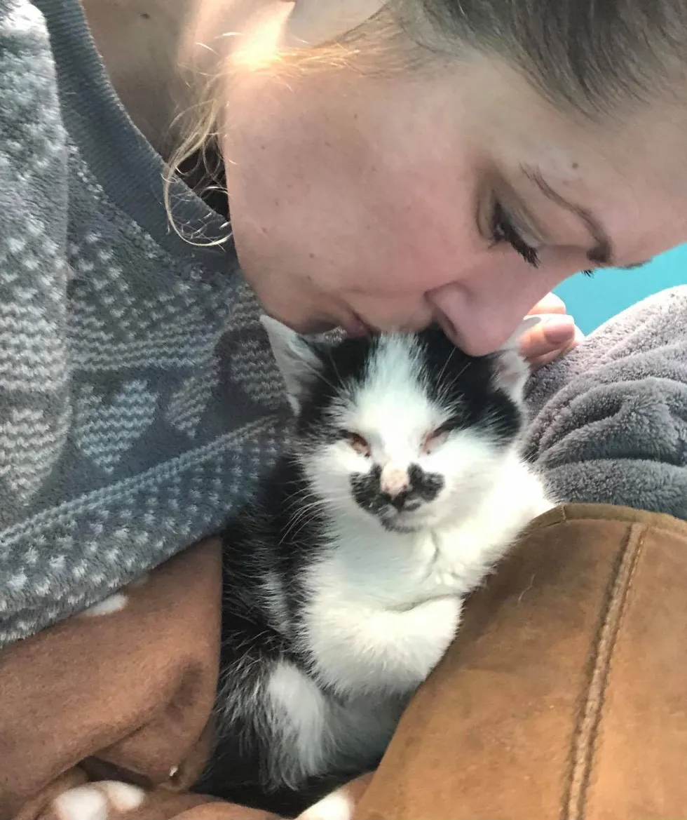 “The next day, he was a different boy. He started playing with some toys, licking my face… He flourished into a playful, affectionate and silly kitten,” Katie said.