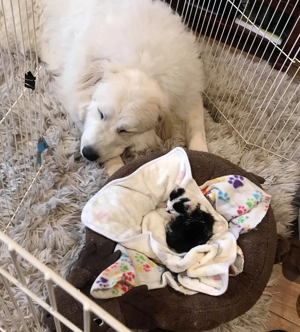 Katie took him home and wrapped him up in her best blanket with a heating pad and a heartbeat toy. Her dog, Burt, came to offer some comfort and kept the little guy company the whole time.