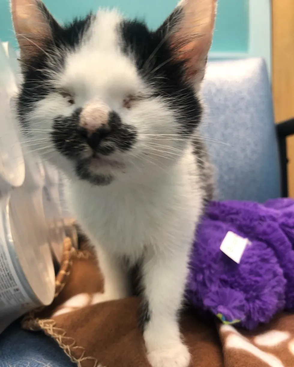 A blind kitten caught the attention of a woman when she heard his scream at the shelter. She couldn’t leave him there.