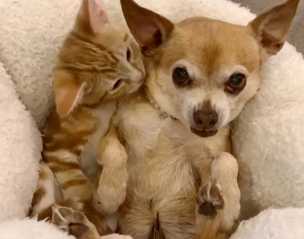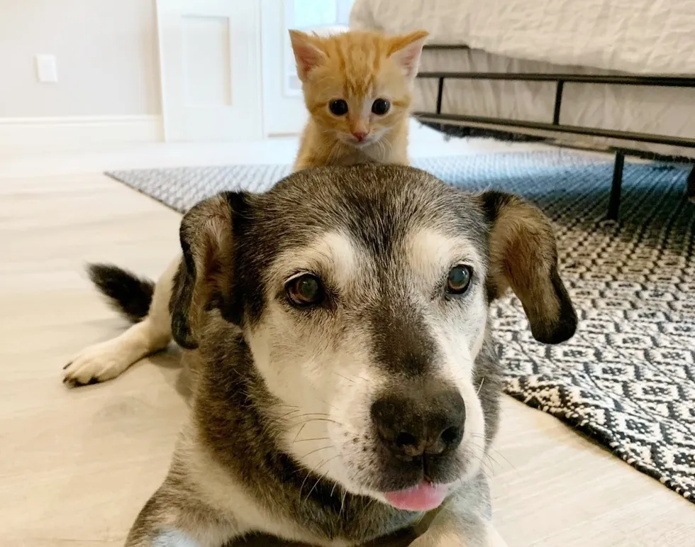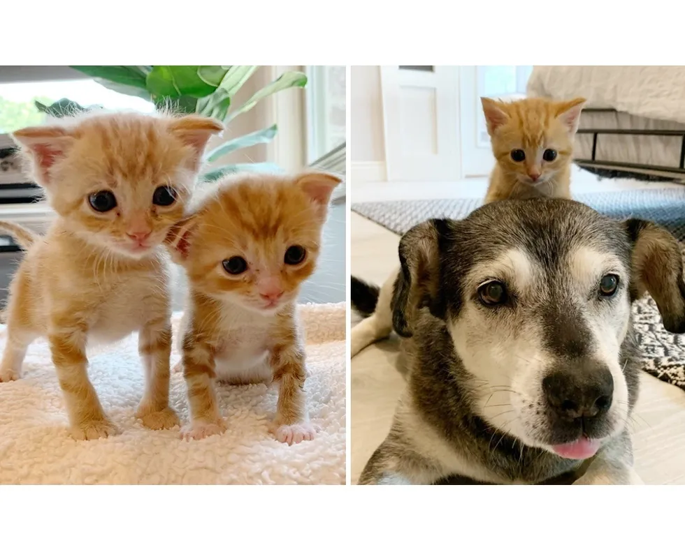 Their curiosity quickly grew as they got to hang out with other furry friends in the house. Jack the senior dog adored his little feline buddies and let them climb all over him.