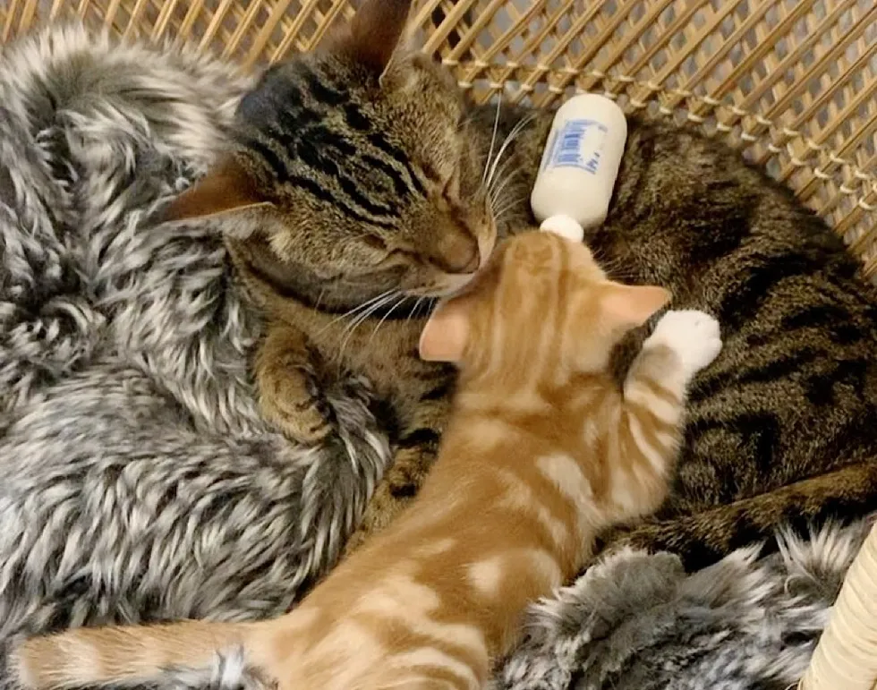 Rigby the tabby cat has a soft spot for kittens in need. He volunteered to be the surrogate dad for the kittens and made himself available whenever they needed a hug.