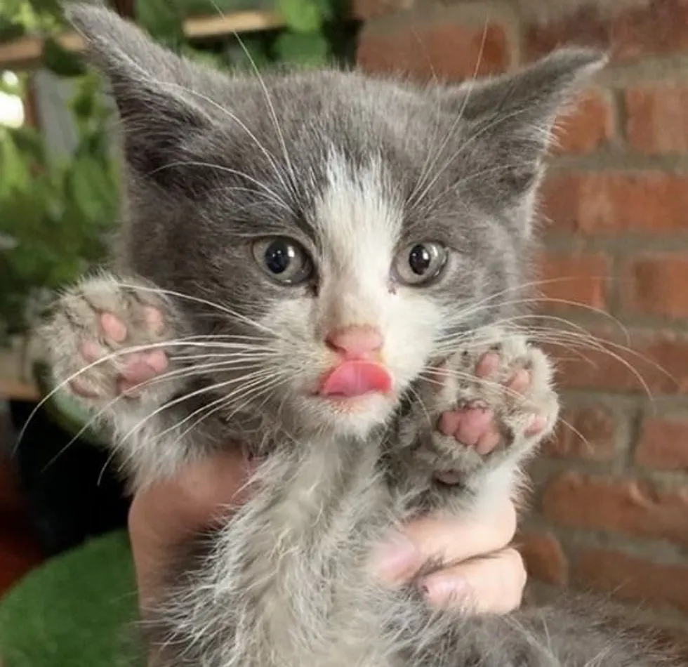 A kitten his age wouldn’t be able to survive the bitter winter on his own, so the passerby reached out to her local Facebook community group for help. Athina, an animal rescuer who lives nearby, immediately offered to take him.