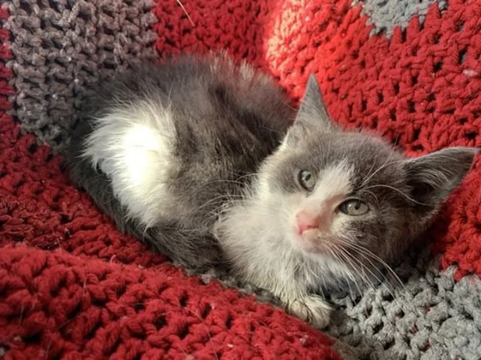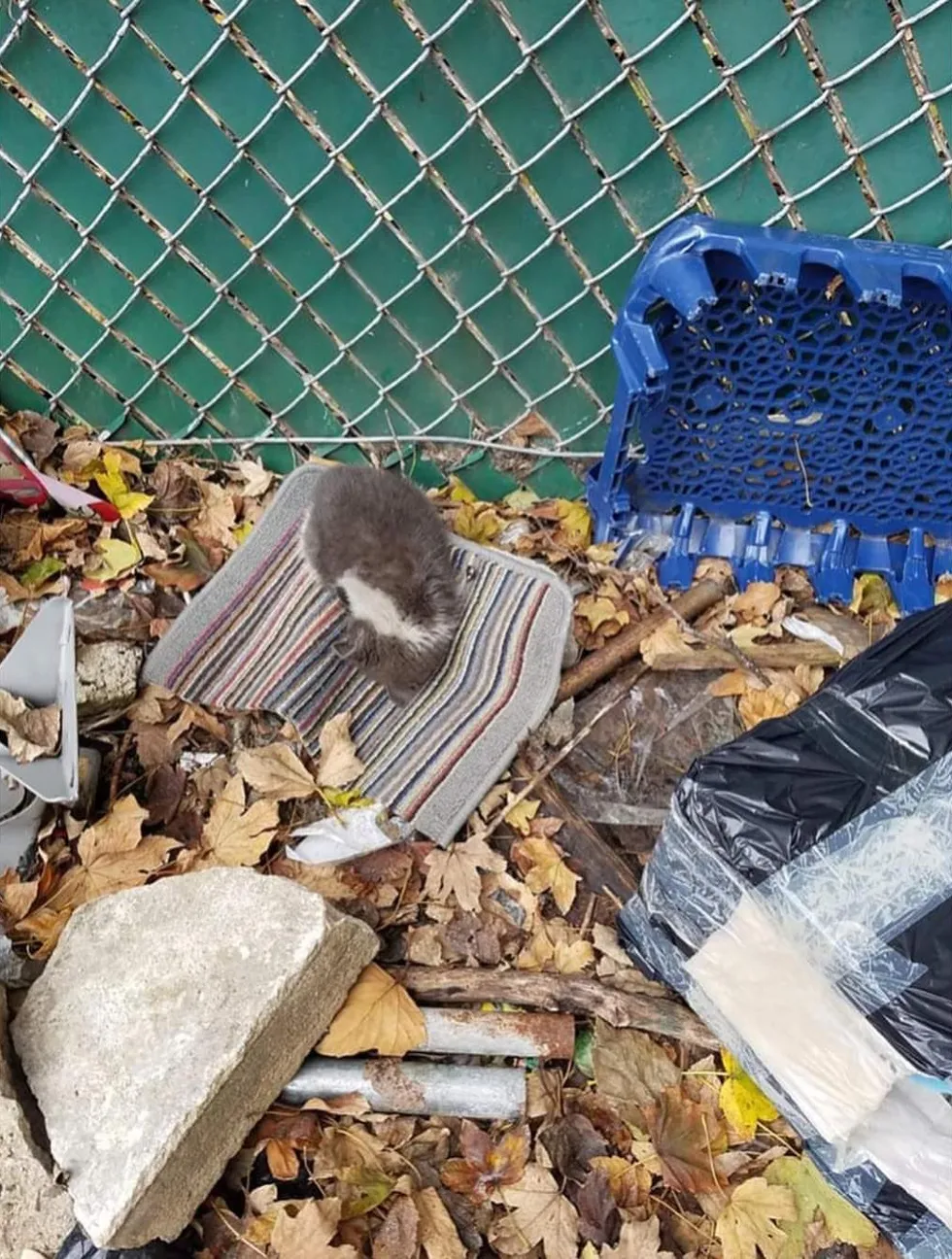 A good Samaritan spotted a tiny ball of fur atop a pile of garbage. Upon closer inspection, she noticed it was a kitten curled up in a ball, out in the cold.