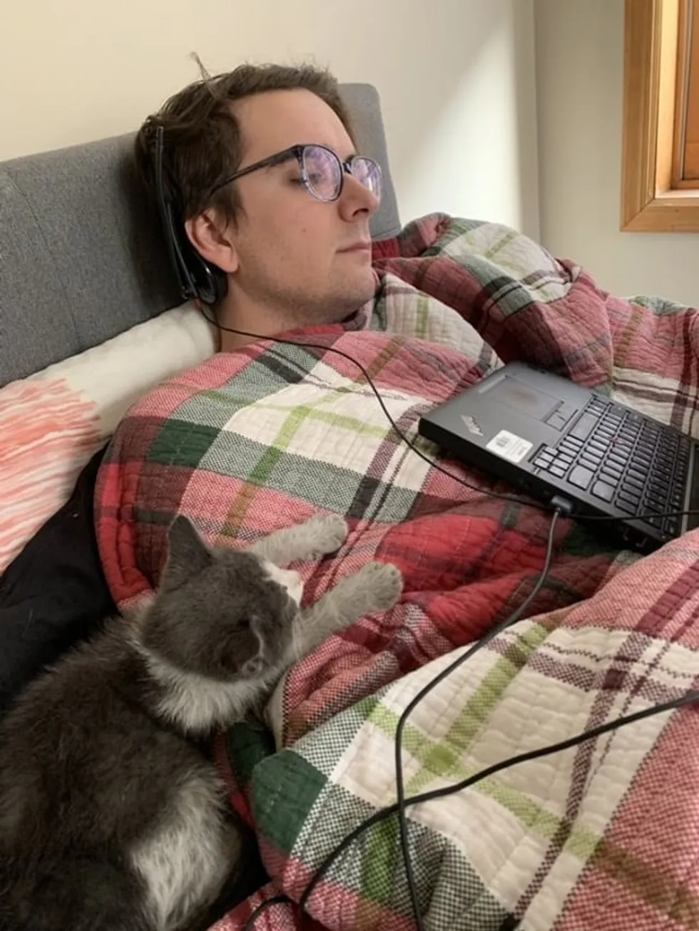 The little guy no longer needs to worry about food and shelter. He’s quickly adjusted to his VIP life and gotten very used to cuddling with his foster dad.