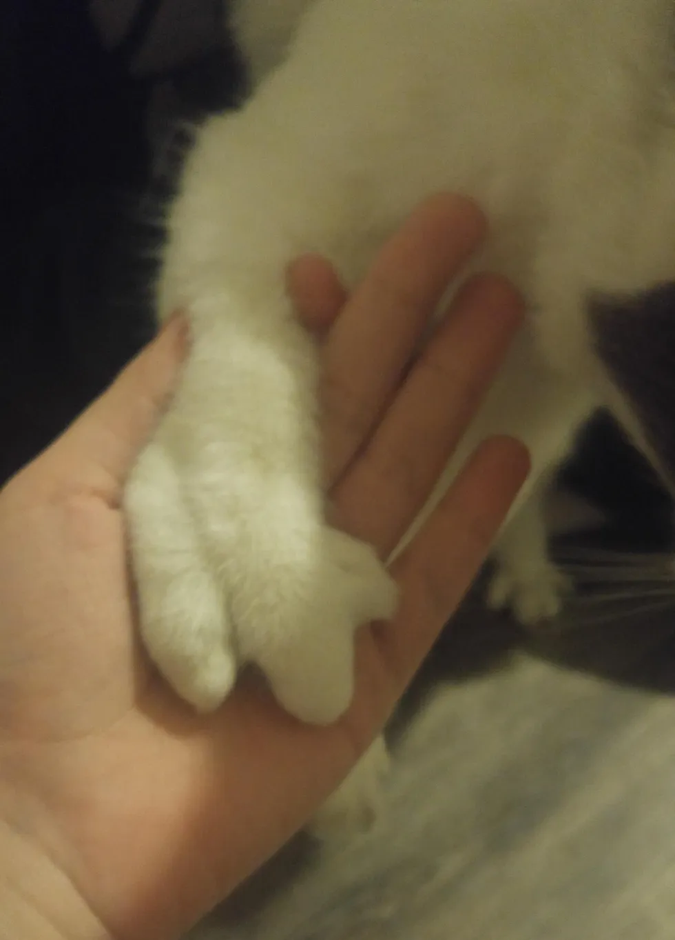 “He only has two bones coming from his wrist instead of four. One is really thick and has two thumbs, the other one is stubby and has a half-formed claw. The underside is a couple toe beans and weird growths that look like they were supposed to be claws,” she said.