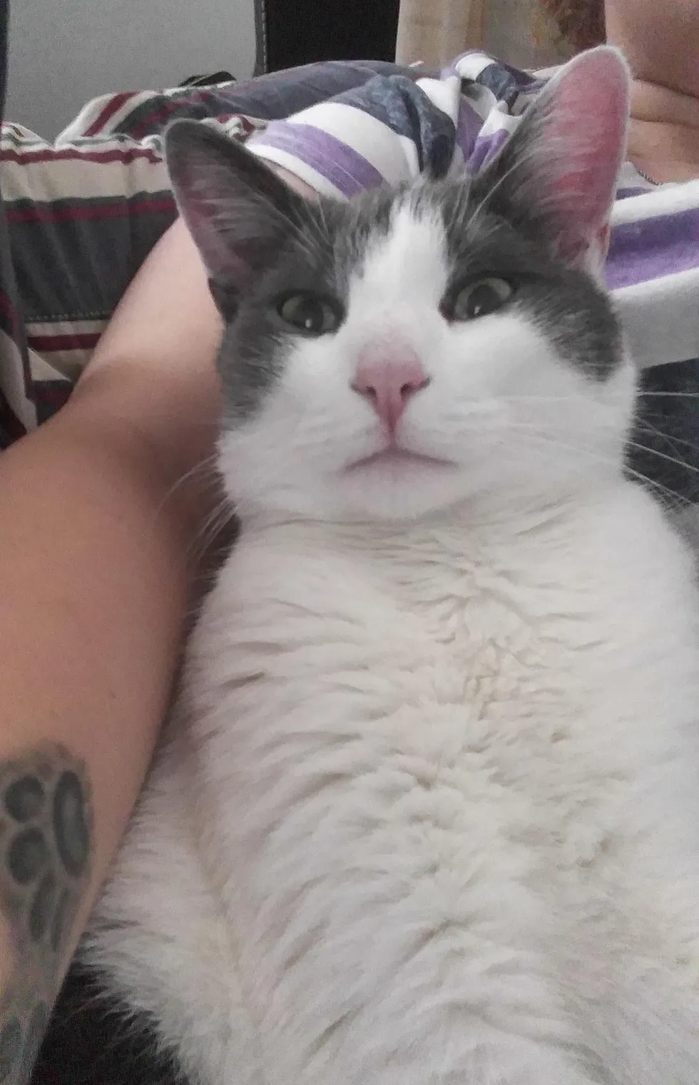 Spock curled up in his human’s arms for some extra dose of TLC. He’s already a snuggle bug.
