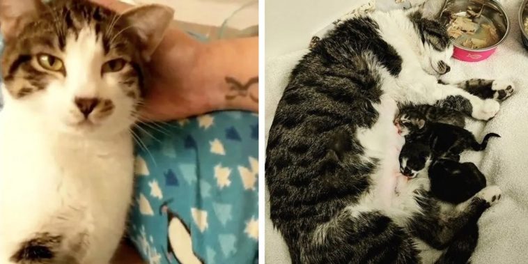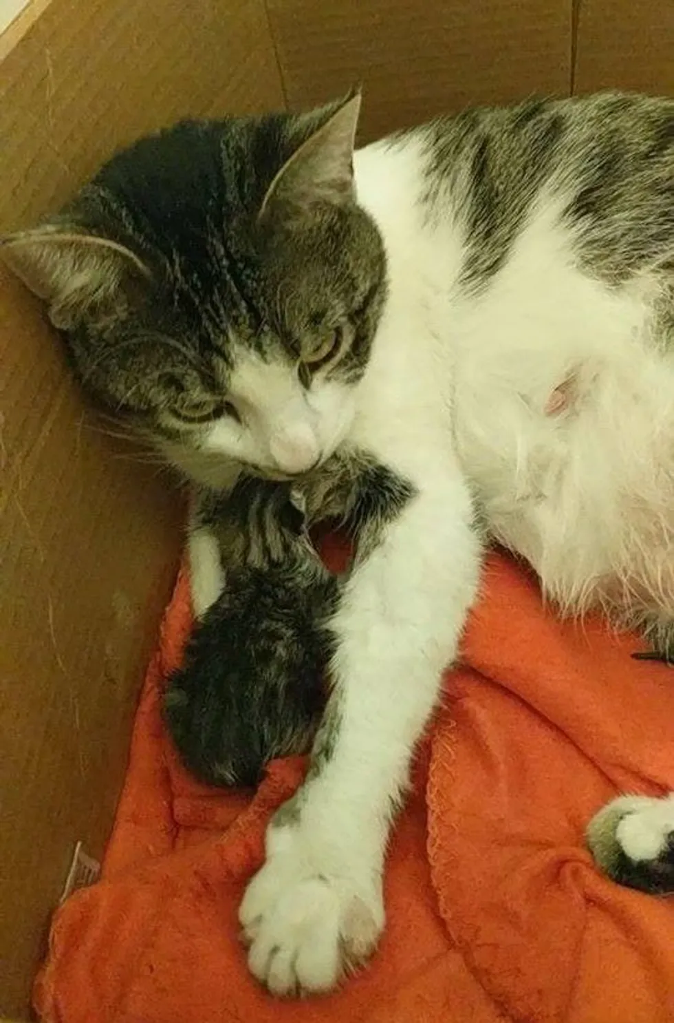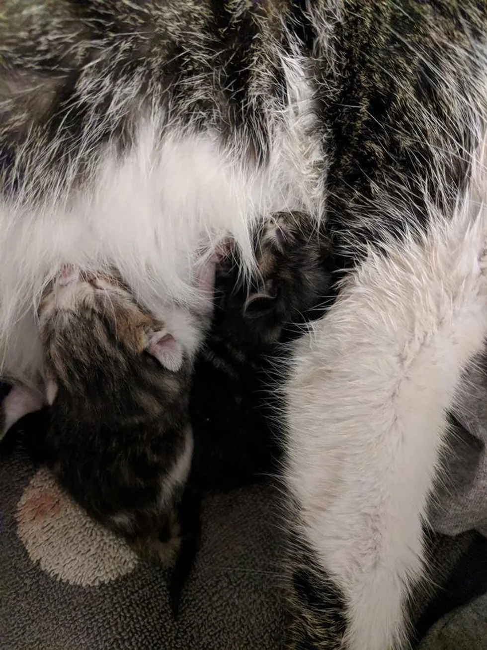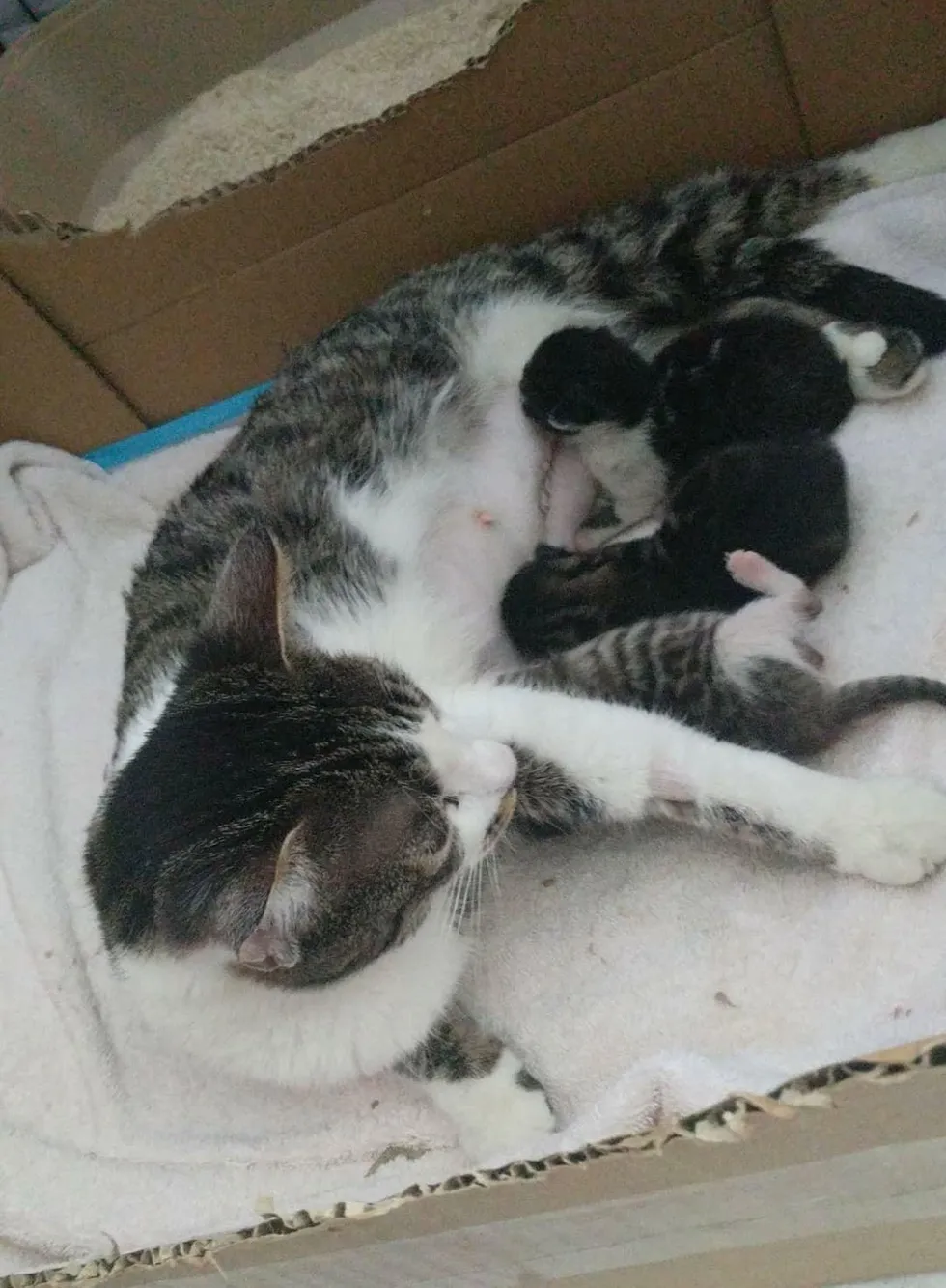“It was around 11:30PM. I walked in and she already had given birth to three kittens in the kitten box,” Jacqueline told us.