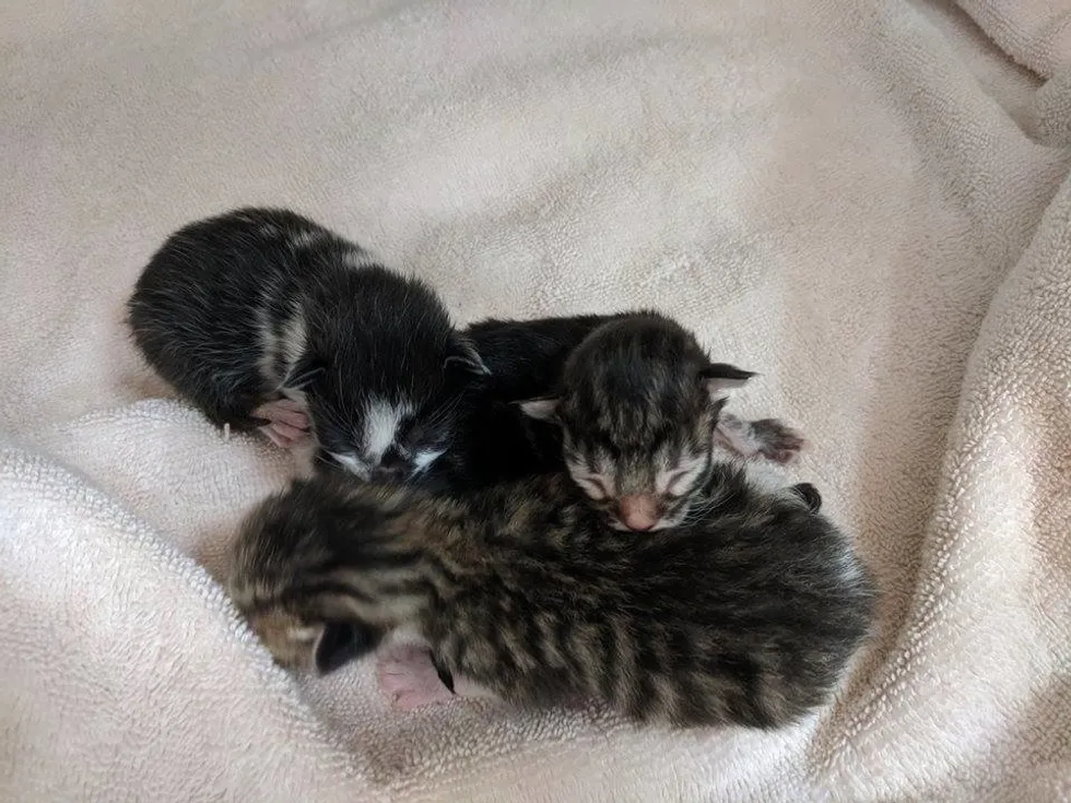 “I just sat with her on the bathroom floor, helped clean up the babies and gave her lots of food and water to drink. She then gave birth to a 4th kitten but was too tired to clean her so I aided in getting her nice and clean.”