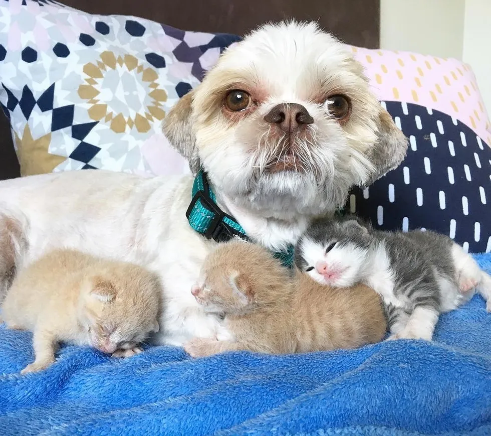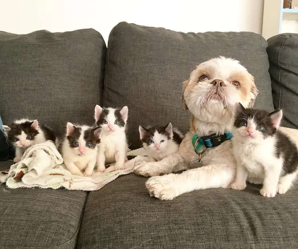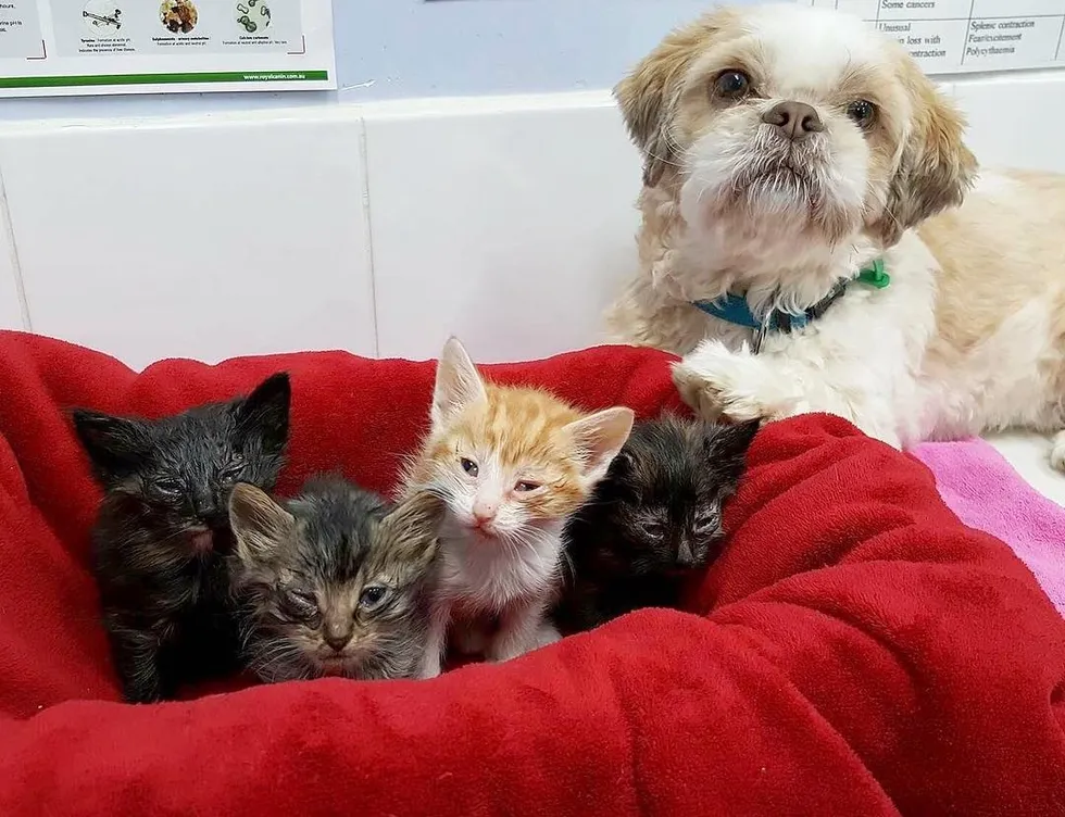 A 5-year-old dog named Moon from Perth, Australia has helped care for 74 kittens that came into a vet clinic, in need of motherly love.