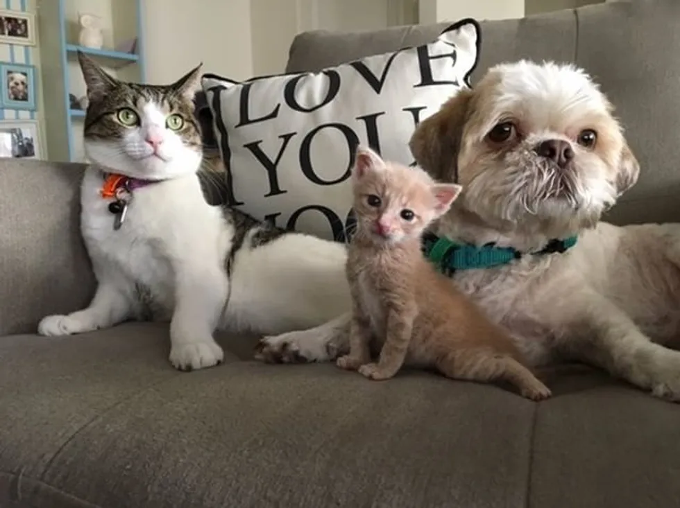 The two became a bonded pair. “She is now his feline sister,” Kate told us.
