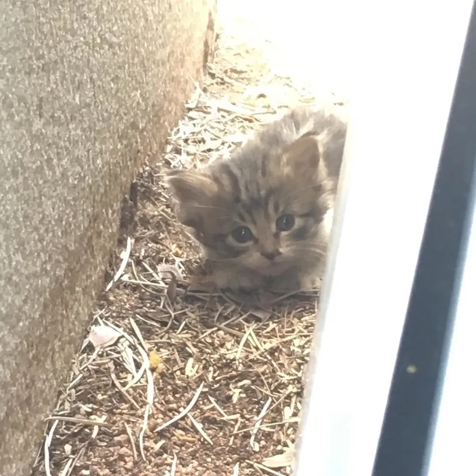 A year ago, a tiny kitten was spotted running around the parking lot at a facility in Arizona. The kitty was frantically trying to hide from everyone there.