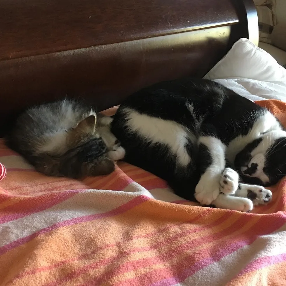 “They are best buddies for grooming, napping and playing. Mayday also won over Calamity, who is seven.”