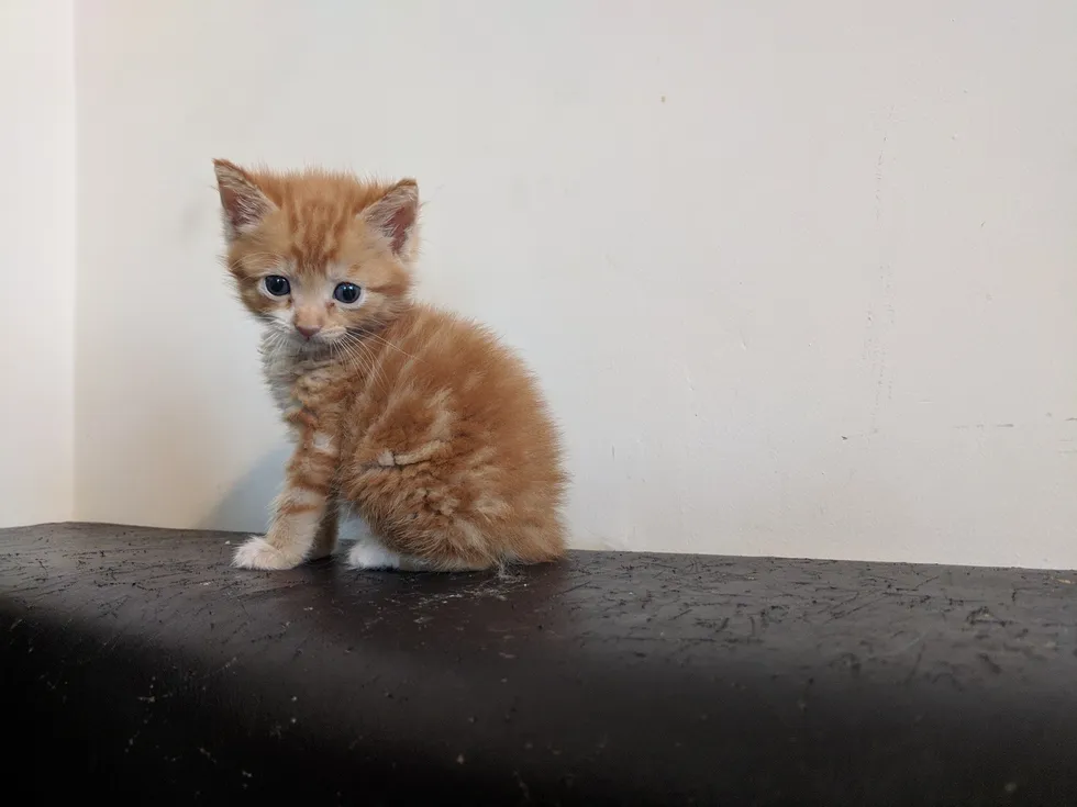 Just five days ago, the ginger boy was miserable and could barely breathe. Now he’s a playful, curious little guy full of adventurous ideas and is fearless with bigger kitties.