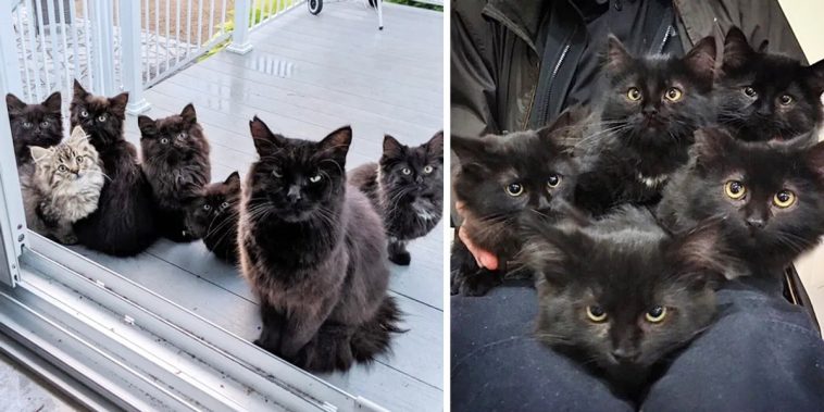One day, when Usagi returned to Lisianne’s family for food, she brought some extra visitors with her. Usagi and a bunch of her mini-me versions took over Lisianne’s porch. The woman was so surprised and happy to see the cat she was taking care of and her six kittens at her doorstep. Without a second thought, Lisianne welcomed them all inside!
