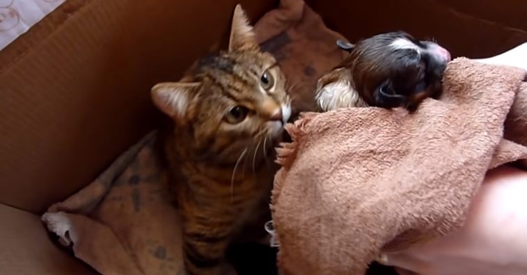 People use to believe that cats and dogs are not getting along too well. But the animal kingdom proved that animals can share the most unusual friendships. More, regardless the species, animals are the kindest souls when come to comforting those in need of help. This time it a mother cat that meets a newborn puppy, and her motherly instincts immediately kick in!