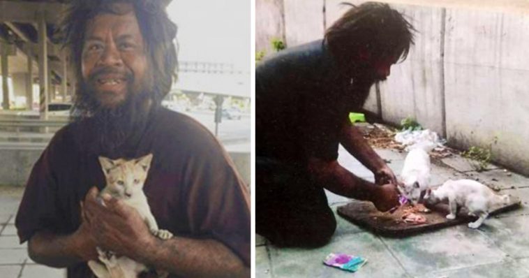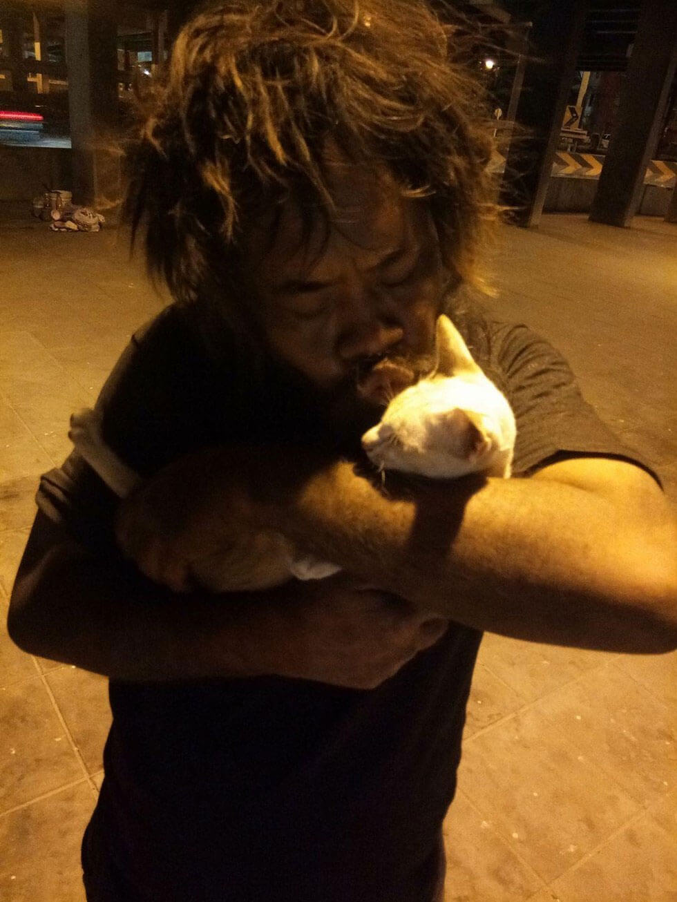 Despite living a tough life at train station, this homeless man Loong Dum from Thailand always makes sure that his friends, stray cats, are cared for and well fed. He may not have any children, but he knows the responsibility of care.He sells limes every day on the street so that he can make money to buy food for his companions. Sometimes, he doesn’t have enough food for himself and he is hungry, but not matter what, his first priority is always to feed his beloved cats. To him, they are his family, and they rely on him.“I’m fine with skipping meals, but the cat needs to eat,” he said.