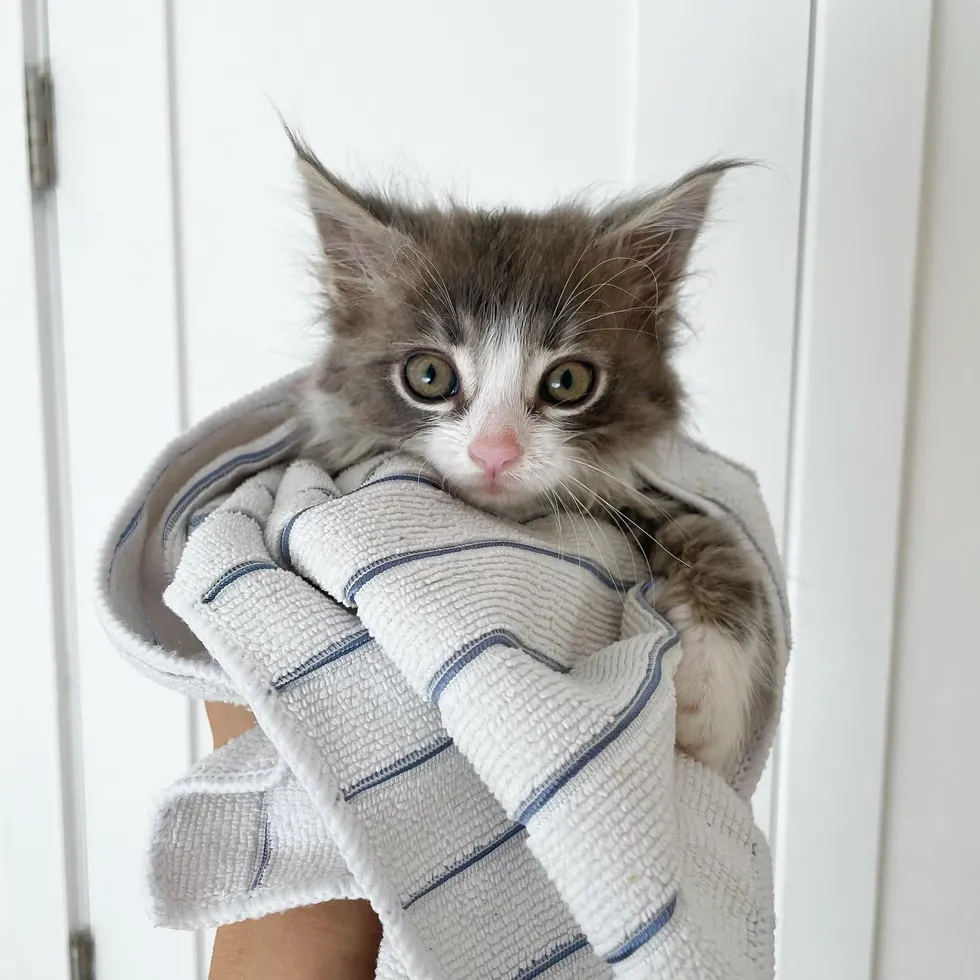 Caroline began supportive care for the kitten, and was able to remove all the pesky fleas, get him cleaned up and hydrated.
