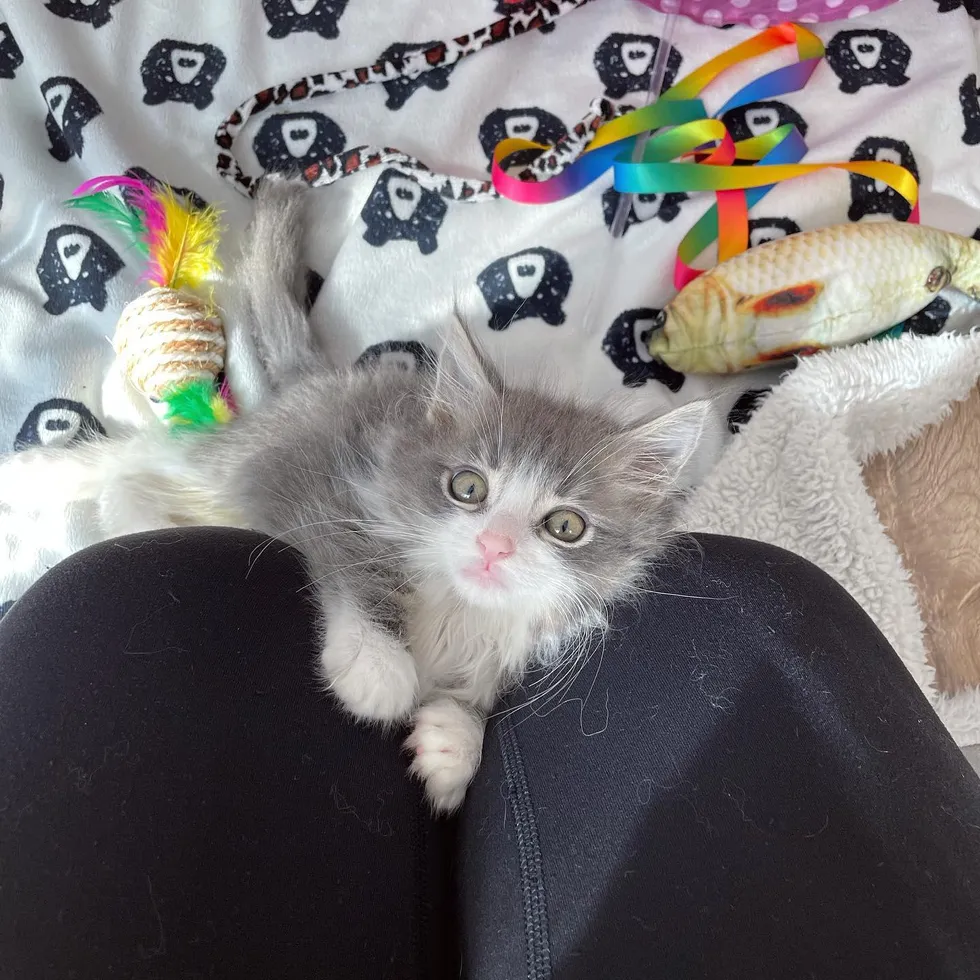 “Archie was very scared at first and hid under all his blankets. He cried for the first hour, and then started to realize he was safe. Within a few hours he was purring up a storm and loving pets and snuggles.”