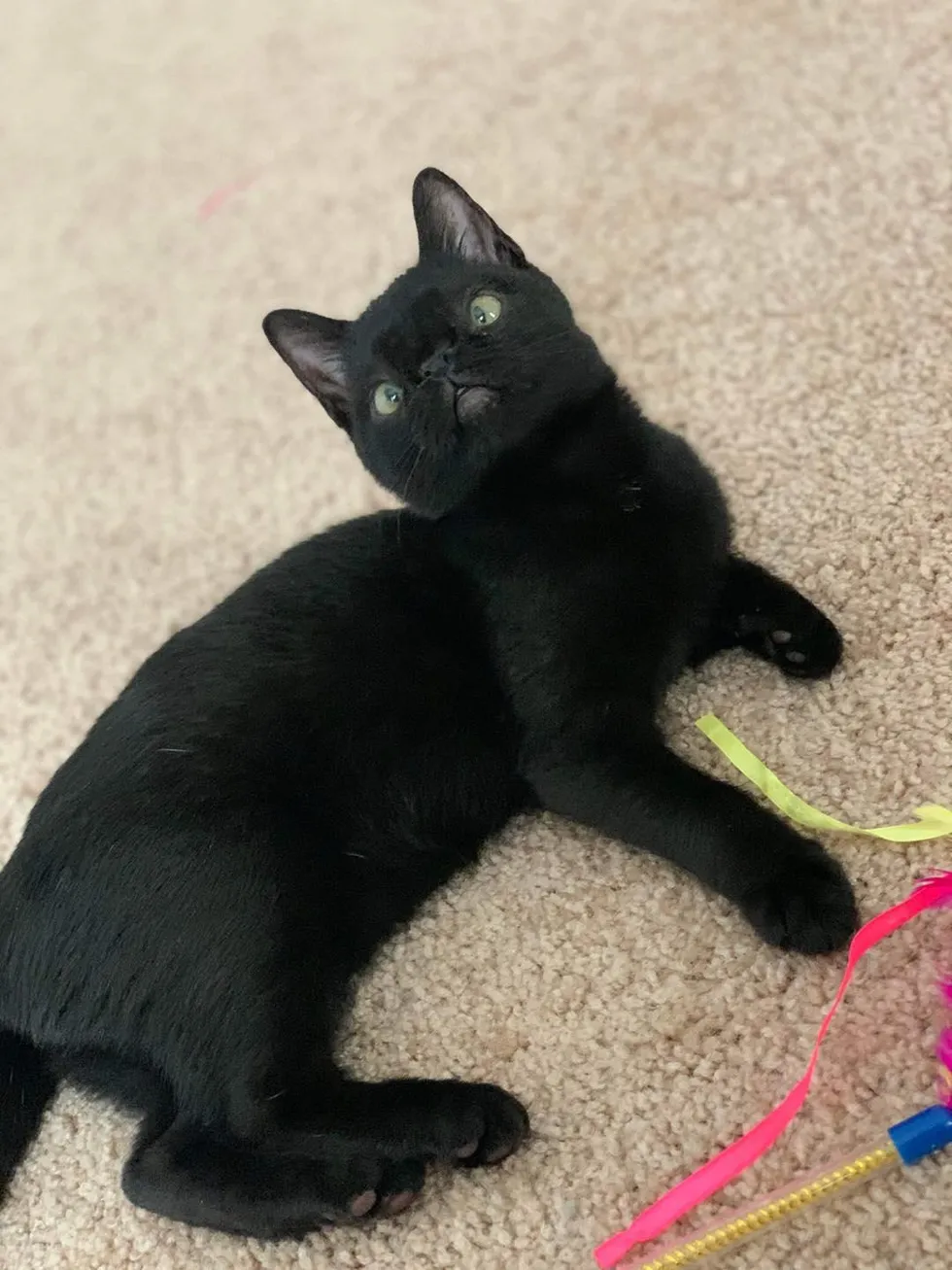 In just a few weeks, the scrawny little kitten has blossomed into a healthy, gorgeous panther kitty. Having good food, toys, warm beds and the company of her people make her the happiest cat in the world.