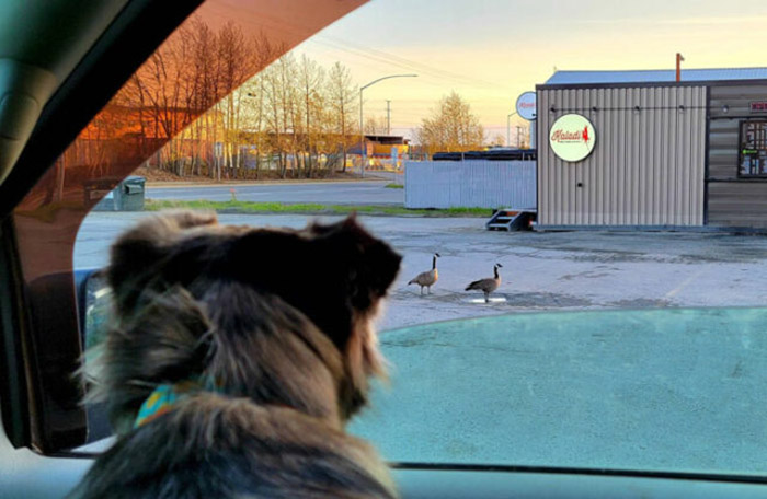 At some point, a wild feline with a ginger cat appeared in the yard.