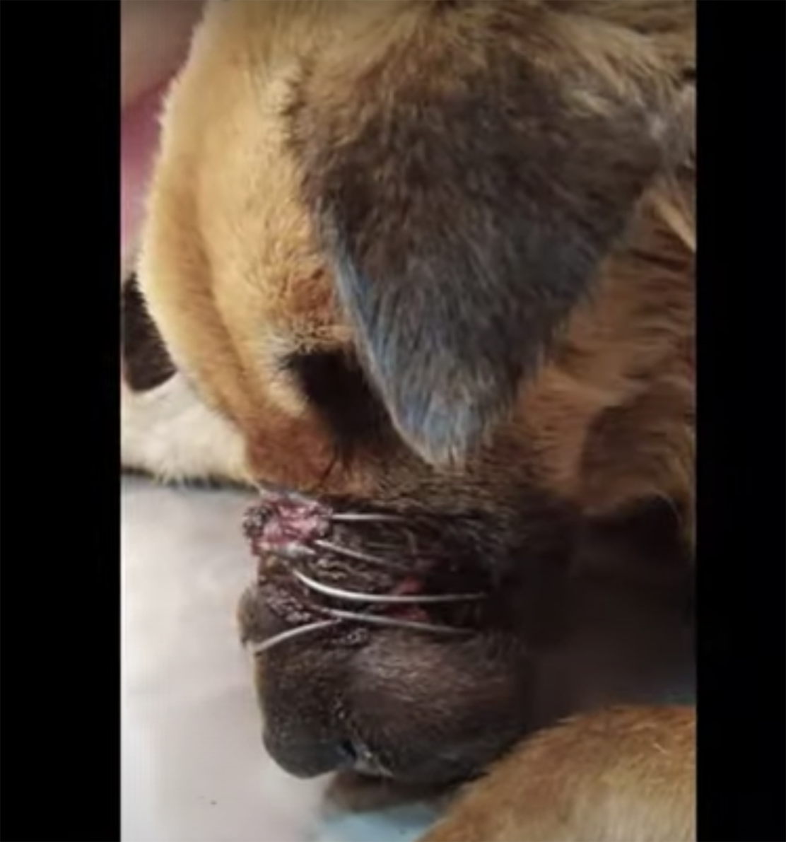 During a her short walk, Hazel spotted a helpless stray kitten crying in the rain, so she immediately rushed to comfort her. Soon as she gained the little cat’s trust, Hazel guided her to the safety of her home. Monica, who eventually caught on camera the sweet moment, couldn’t believe her eyes what she was seeing.