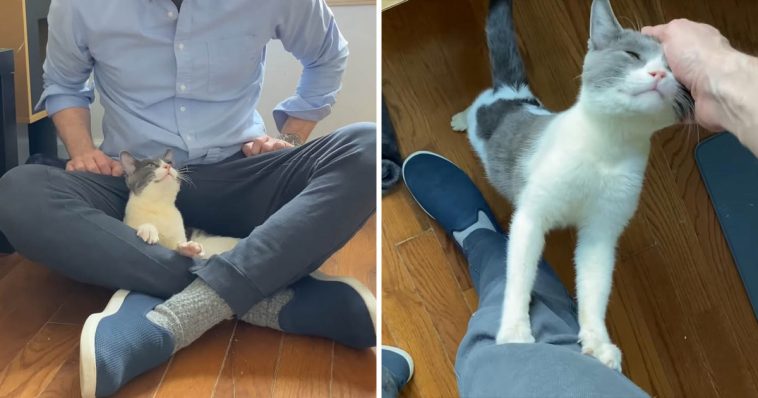 The charming bicolor cat always wanted to stick with his humans, he was just thrilled to be indoors again. Little Bear couldn’t help kneading (making biscuits) all the time even when he was sitting up, and it’s not hard to notice how happy and content he was.