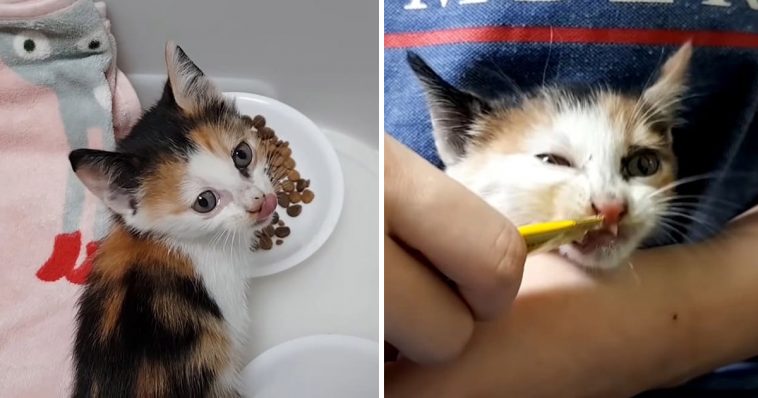 She was small, so everyone thought that she was a one-month-old baby. However, the hospital explained that she was a two-month-old baby. For this reason, she is old enough to eat hard food and eat by herself. When Yasik ate cat food for the first time since she was born, she cried. She loved that delicious food and couldn’t stop eating.