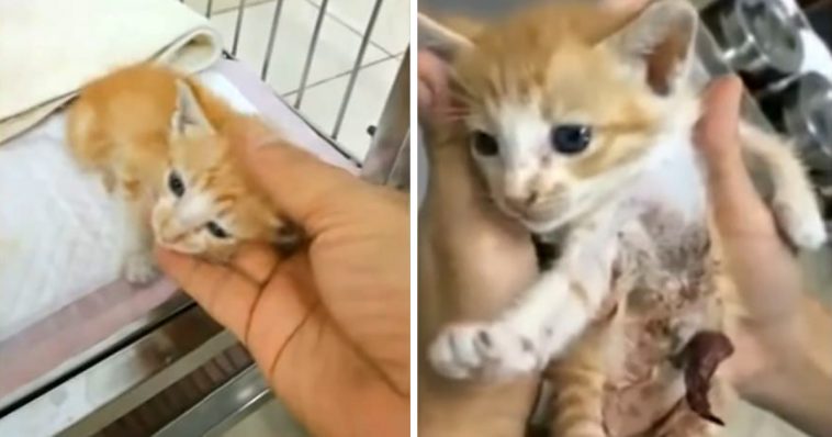 A tiny kitten was found crying alone and helplessly on a street of Thailand. She was just one month old and was in very bad shape. She had serious injuries on her tummy that caused by a huge dog bitten. No one knew about how she came out alone and had to fend for herself. They thought that she lost her mom or was abandoned by someone. It’s heartbroken when a kitten has to live alone without food and a shelter