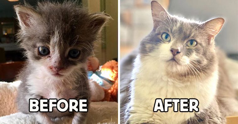 Below we’ve compiled a list of fantastic pics of kittens growing up into beautiful cats. Some smart people have caught their growth on camera and shared their love for transformation online. These are just before and after pics, but you better believe that there have been plenty of them taken in between. Enjoy!
