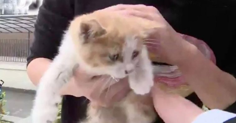In Chengdu City, which is just Southwest of the Sichuan Province of China, a tiny kitten was trapped between glass panels with no access to food or water for three whole days.