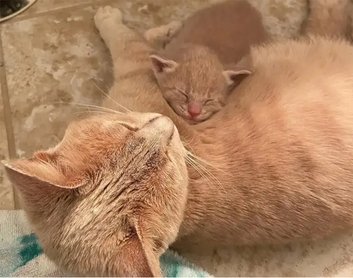 A year-old ginger cat put her claws around her sole youngster, attempting to shield her from the outside world. Nisa Konuma, a field volunteer, rushed to take the young family home since they needed refuge.