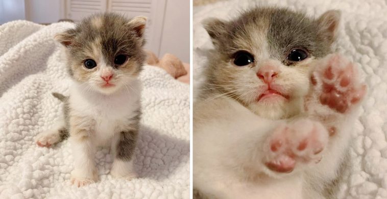 A little cat was found alone on the street outside a residence in North Carolina a week ago. The kind individual waited many hours, expecting the mother cat to return for her youngster, but she did not.