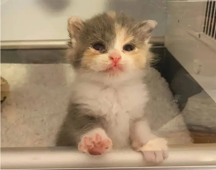 When he carried the multicolored baby (a girl) inside, he observed that she was extremely feeble and that her eyes were crusted. The nice man tried his utmost to help the unfortunate creature get through the night, and then sought assistance from local animal rights advocates Sparkle Cat Rescue in Burlington.