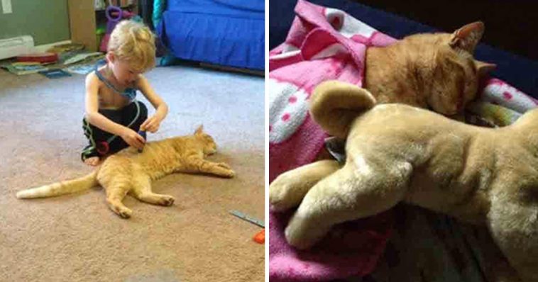 “It’s been almost a year since we took in the neighborhood stray and my son still insists on tucking him in when he naps “so he knows that he lives at our house and will come back.” sympson2612 stated in a post