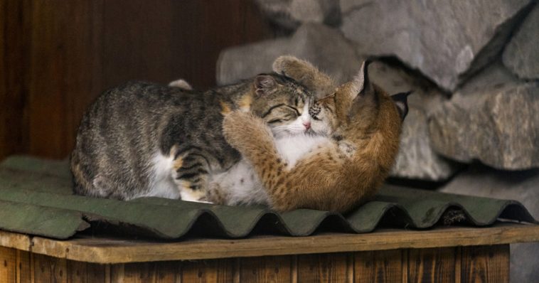 It wasn’t long after they met that the domesticated cat’s motherly instinct kicked in and she started grooming and cuddling her new baby. Nika is now eating better and growing very fast and she will soon outgrow her surrogate mom.