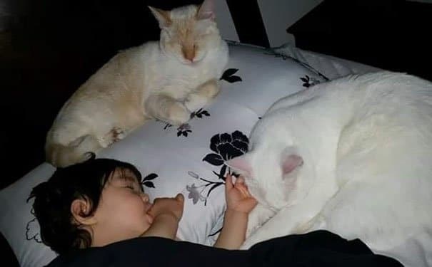 The little baby girl and the cats are just adorable. What better childhood can you ask for? To grow up with the best and most faithful friends is all that anyone would wish for. The feline creatures love their humans more than themselves. They might not show it at all times and even appear bit selfish, but in their hearts, they will always have love for you. All of you who own a cat must deeply connect with this and understand it completely. Theses cats are a part of your family and some of the best memories of your life as well.