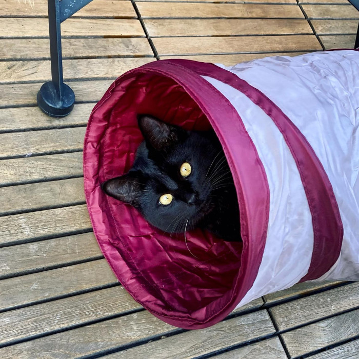 Byrne converted her yard into a playground for stray cats, adding a heated cat house, multiple toys, scratching posts, and tunnels.