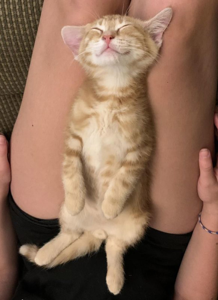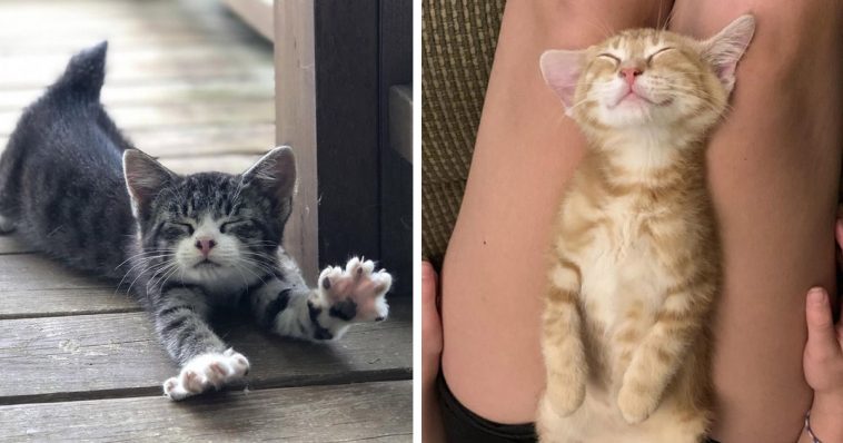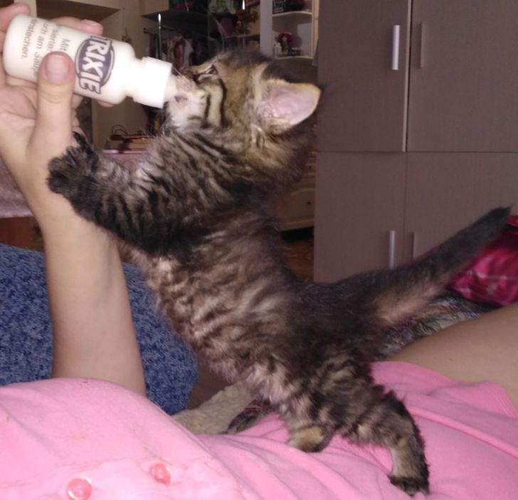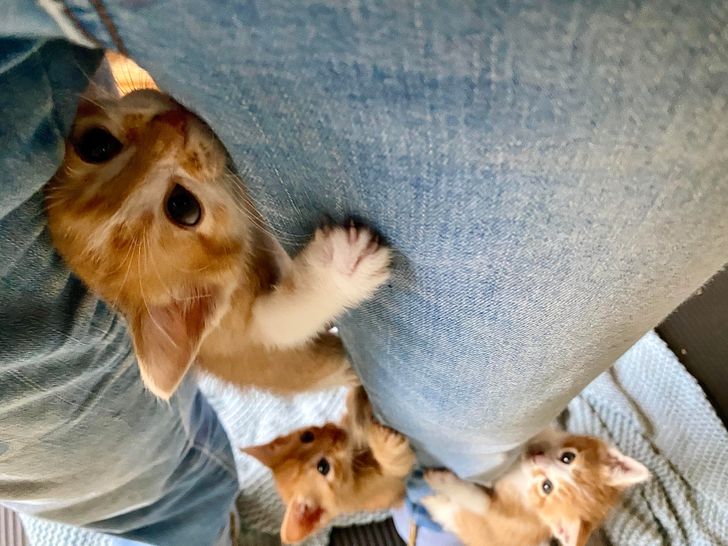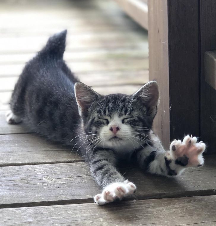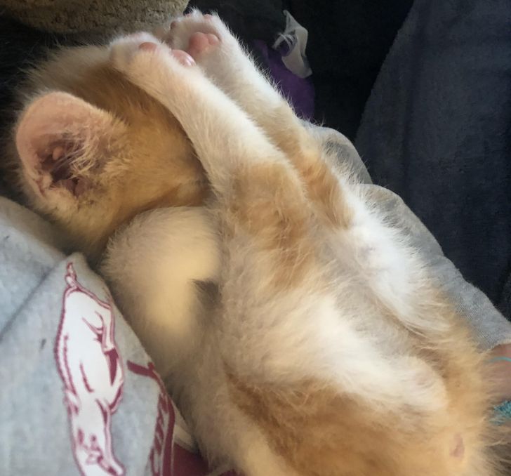 Cats of this age usually tire quickly and nothing prevents them from resting a little on their owner’s feet.
