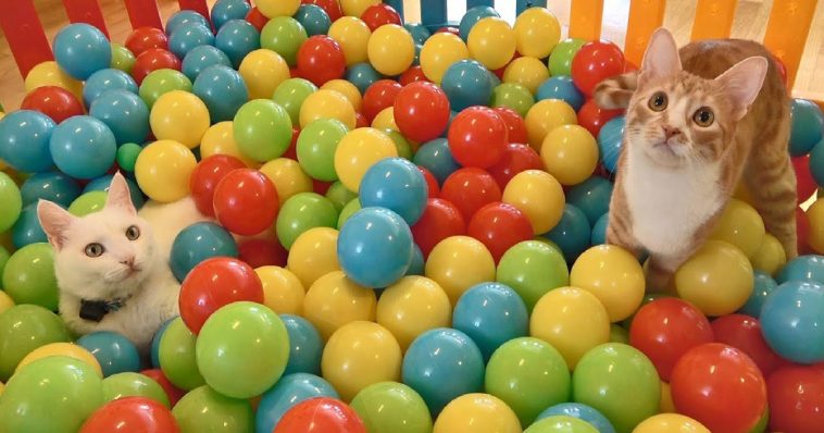 As every cat person already knows, cats absolutely love to play with boxes. That being said, have you ever tried filling your cat’s box with colorful balls and making it into a ball pit?