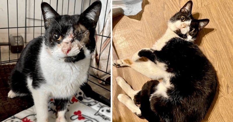 Sarah said she received a call saying they found a cat with one eye, the other damaged.