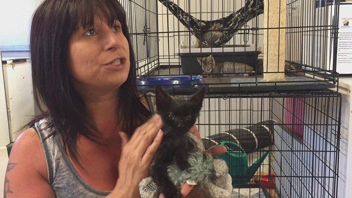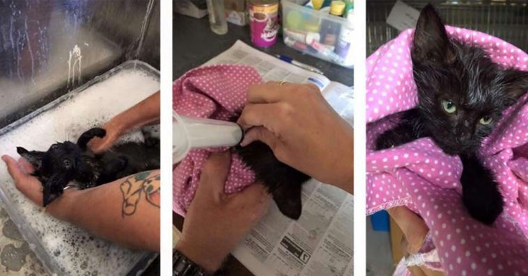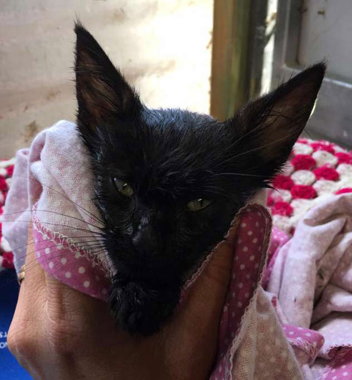 Meet Sila the black kitten! She fell into a barrel of engine oil and was rescued by workers in the nick of time.