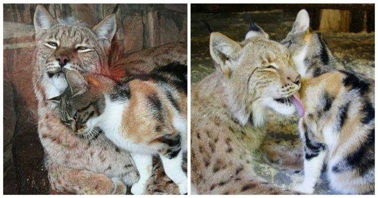 In 2007, a stray calico broke into the local zoo in St. Petersburg. Not exactly sure where to head first, Calico saw a lynx pacing in a cage. The stray cat entered the enclosure without thinking twice, probably hoping to score some leftovers. Now, with the lynx being a wild cat, it’s pretty normal for many to think that this story ended badly. However, as soon as the cat entered, the lynx greeted his new friend and started licking it!