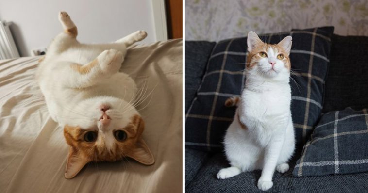 “As it’s one of his front legs missing he still has all the power of his back legs to jump etc, so he has no problem getting upstairs or jumping up on to furniture. Bringing him home was just like bringing home any other cat.