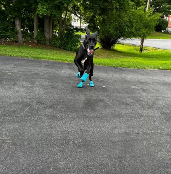 “I’m a sucker for a sad animal story, and when I read the information on the website about how he had lost his leg something just clicked. I was living alone and had recently moved back to the area, and I thought Mylo could be the perfect companion for me, and I could help keep him safe and ensure he had the best possible life.”