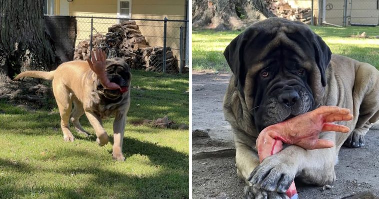 “He did venture out of our room and came downstairs and instead of cautiously sniffing around, he threw himself into a pile of toys!”